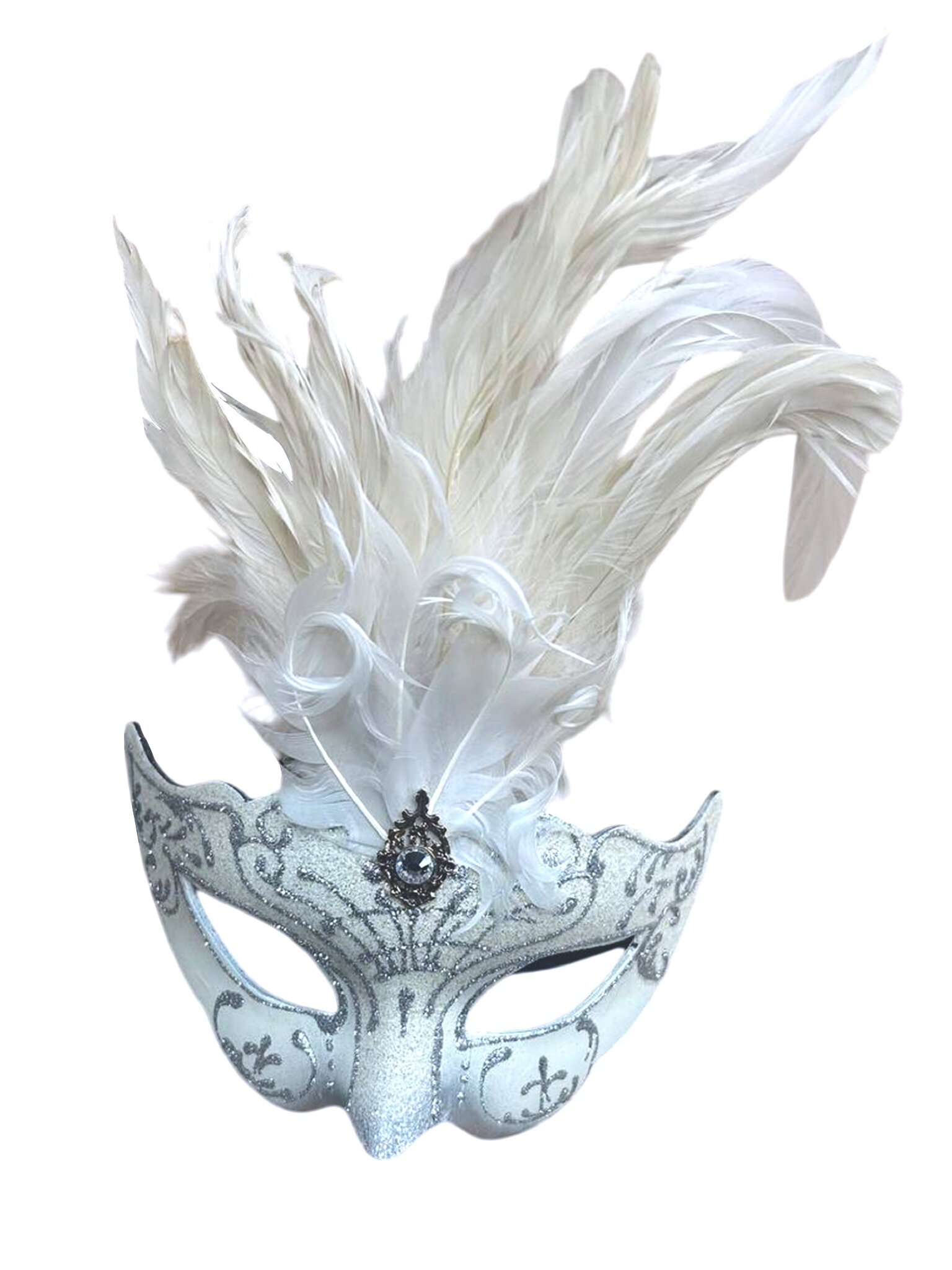 Элегантная белая маска Colombina Ciuffo станет прекрасным аксессуаром для любого торжественного мероприятия. Венецианская маска на пол-лица украшена изысканным серебряным напылением и узорами, дополнена грациозными перьями. Изготовленная из качественного папье-маше, она идеально подойдет для женщин, стремящихся подчеркнуть свою индивидуальность. Маска выполнена в классическом бело-серебристом цвете и вдохновлена атмосферой Италии. Маска добавит шарма на корпоративе или светском балу.