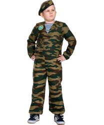 Детский костюм "Десантник с автоматом" предназначен для юных патриотов и военных энтузиастов. Костюм включает в себя куртку с нашивкой воздушно-десантных войск, камуфляжные брюки, берет. Костюм солдата подойдет для различных военно-патриотических мероприятий, таких как День защитника Отечества, День Победы или для ВДВ.
