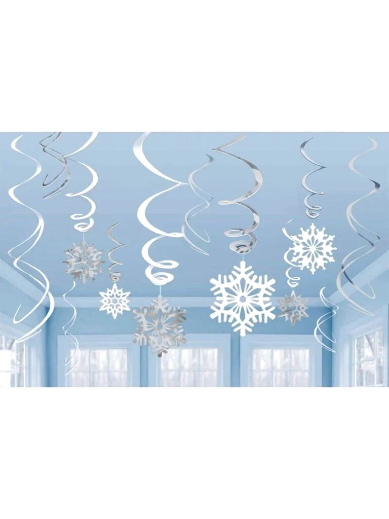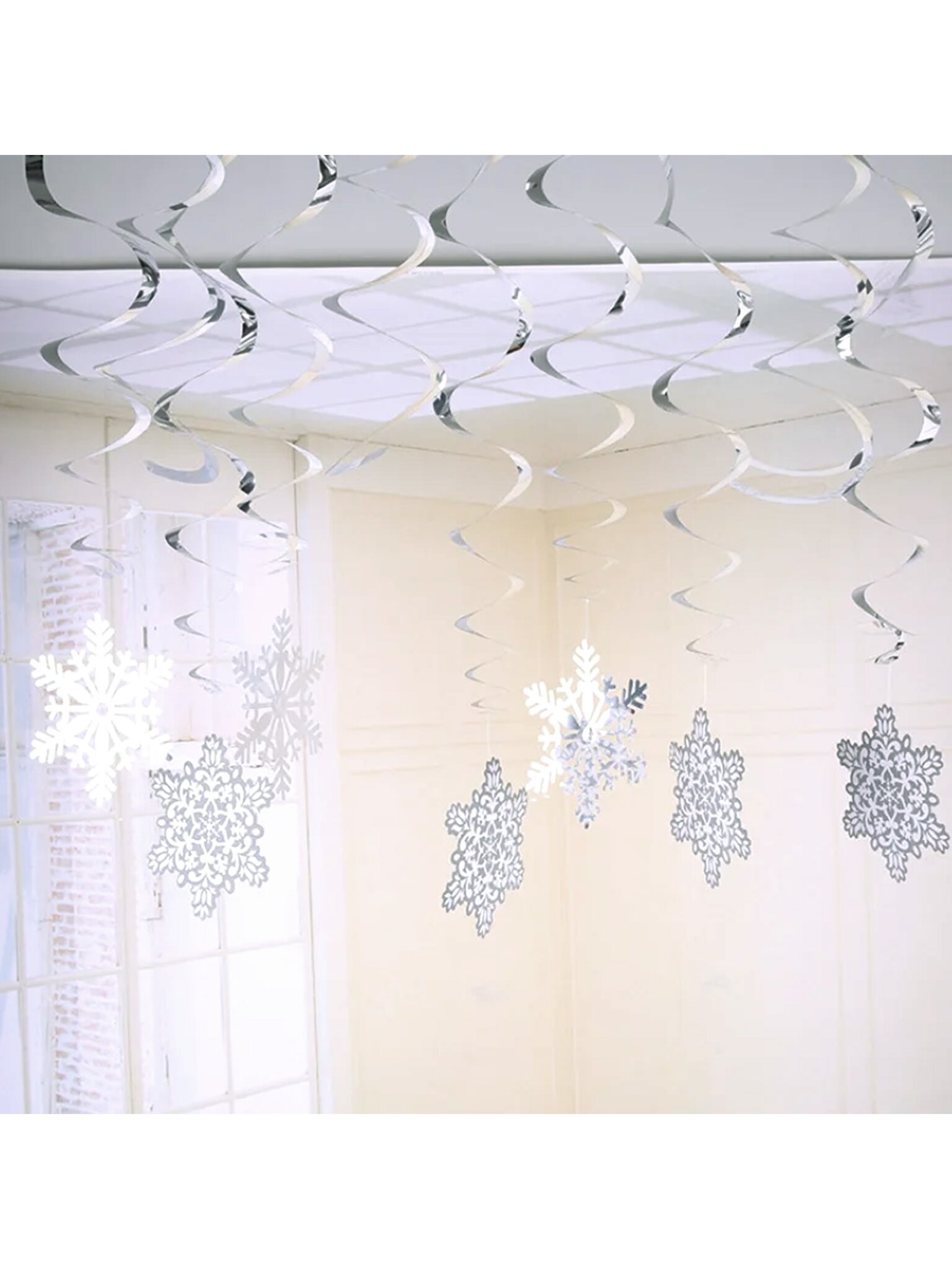 Подвесные снежинки — отличный выбор для новогоднего декора. В наборе 12 снежинок, гирлянда длиной 60 см. Изготовлены из бумаги и фольги, снежинки создадут атмосферу зимней сказки на Новый год. Новогодняя гирлянда идеально дополнит любую праздничную обстановку. Легкие и изящные, они прекрасно подойдут для украшения как домашнего интерьера, так и офиса на корпоратив. Создайте уникальное ощущение праздника с нашими подвесными декорациями!