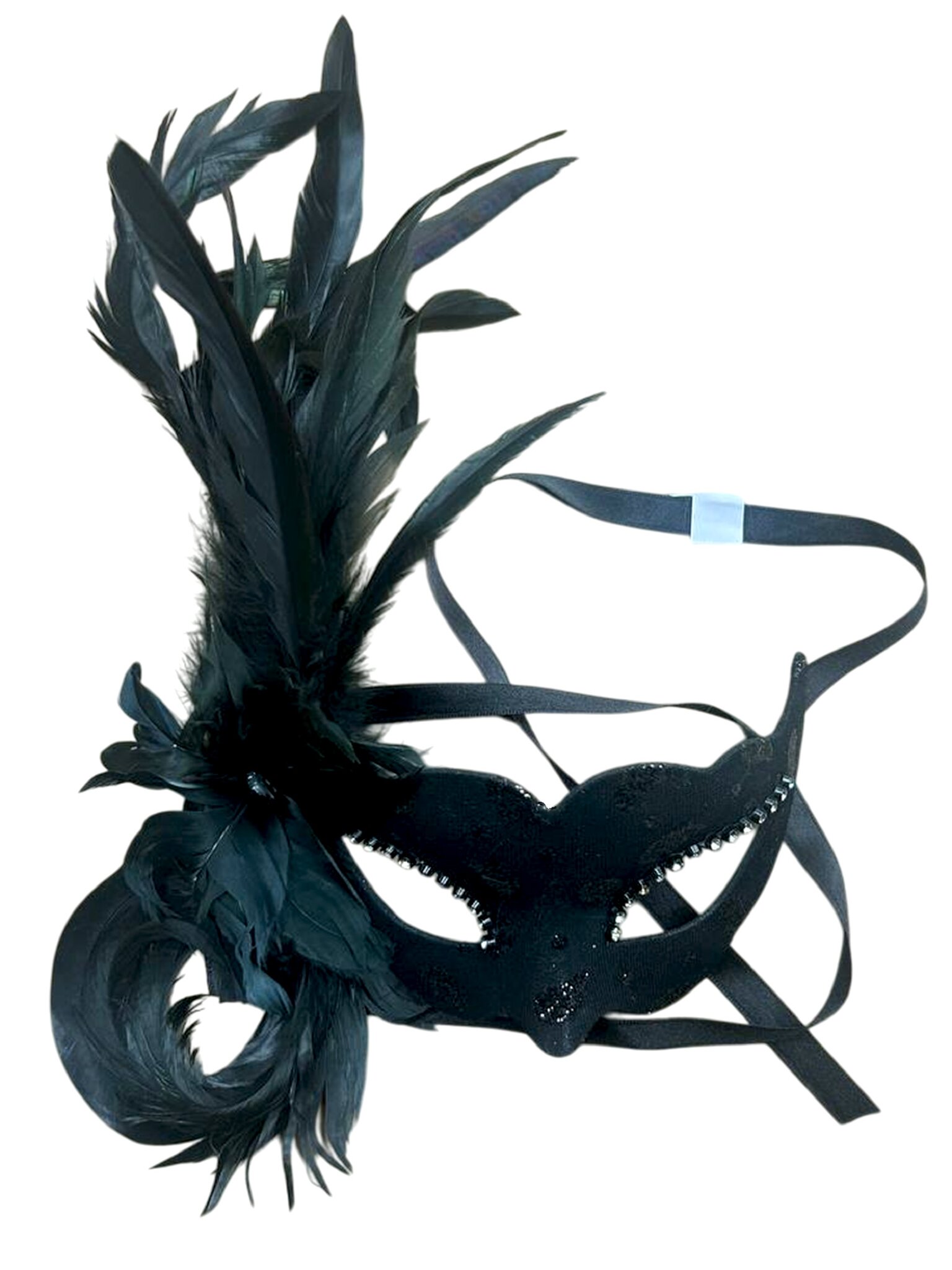 Погрузитесь в загадочный и романтичный венецианский карнавал с этой потрясающей черной маской в стиле Colombinа! Изготовленная в Италии из высококачественных материалов - перьев, пластика, ткани и украшена яркими стразами и блестками, она добавит шарма и таинственности вашему образу. Эта венецианская маска, покрывающая пол-лица, идеальна для женщин, желающих создать неповторимый образ на тематической вечеринке, маскараде или костюмированном мероприятии. Выразите свою индивидуальность и стиль с этой потрясающей венецианской черной маской!